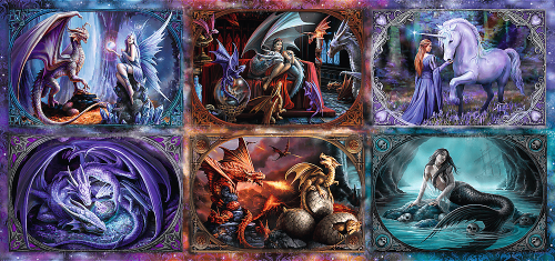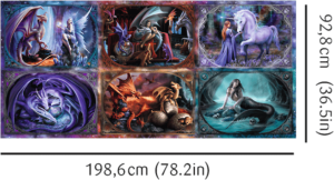 Velkoformátové puzzle s motivy od světoznámé umělkyně Anne Stokes. Každý obrázek je balen samostatně (6x1500 dílků). Díky technologii TREFL Unlimited Fit Technology (UFT) , která umožňuje spojení jednotlivých obrázků mezi sebou, můžete vytvořit libovolnou kompozici obrázků nebo se držet rozmístění dle předlohy.