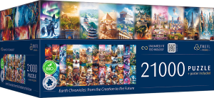Toto puzzle pro skutečné milovníky puzzlí a historie, je určen pro všechny, kdo chtějí být součástí neuvěřitelného procesu skládání 21.000 dílků a objevování světa, jaký byl, je a možná bude. Krabice o rozměrech 50x23x31 cm obsahuje vše, co budete potřebovat, abyste se ponořili do této neuvěřitelné výzvy.