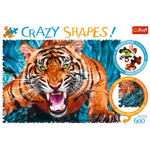 Crazy Shapes puzzle 600 dílků - TREFL - Útok tygra - Nejbláznivější kolekce puzzle na světě, kdy jednotlivé dílky mají šílený tvar a na obrázku nenajdete žádné přímé linie.