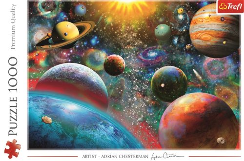 Puzzle s 1000 dílky zobrazující soustavu planet v úžasném prostoru. Po složení vznikne obraz o rozměrech 683x480 mm.Doporučený věk 12+Výrobek je vyroben z vysoce kvalitních materiálů s použitím speciálního kalandrovaného papíru odrážejícího světlo, což usnadňuje skládání. Výrobek byl vyroben v Polsku a pro jeho výrobu byly použity ekologické materiály.