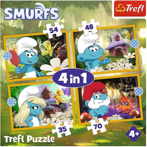 TREFL Puzzle Život ve šmoulí vesnici 4v1 (35,48,54,70 dílků)