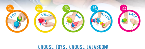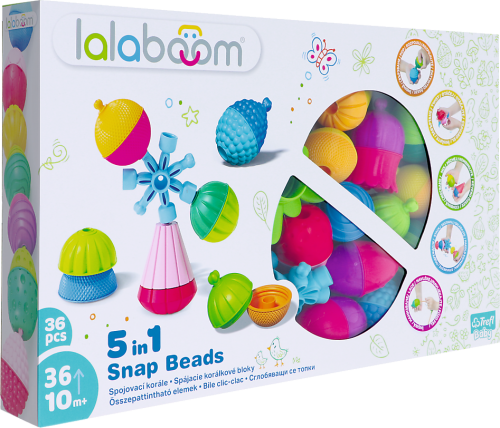 Hračka pomáhá rozvíjet všechny smysly, především zrak, sluch a hmat. Díky hře s korálkovými bloky se dítě učí ve vlastním tempu. Spojovací korále mají různé barvy, tvary a strukturu - poskytují různorodé dotykové vjemy. Lalaboom roste spolu s dítětem a podporuje jeho rozvoj na více úrovních. Korále pomáhají zdokonalovat přesnost pohybů rukou, důkladnost uchopování prsty a také otočné pohyby zápěstí. Spojovací bloky cvičí zrakově-pohybovou koordinaci, rozvíjí kreativitu a prostorovou představivost.
