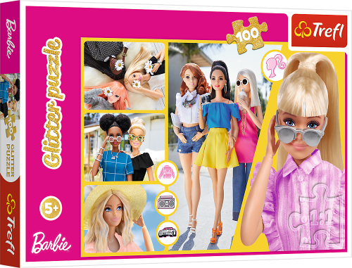 Třpytivé puzzle se 100 dílky s motivem panenek Barbie.