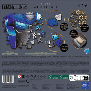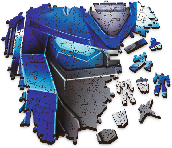 Dřevěné oboustranné puzzle TREFL z prémiové řady Wood Craft Origin se speciálně tvarovanými dílky s transformeří tematikou. Puzzle je vyrobeno ze silné dřevovláknité desky a vyřezáno laserem, díky čemuž jsou okraje hladké a dílky do sebe lehce zapadají.
