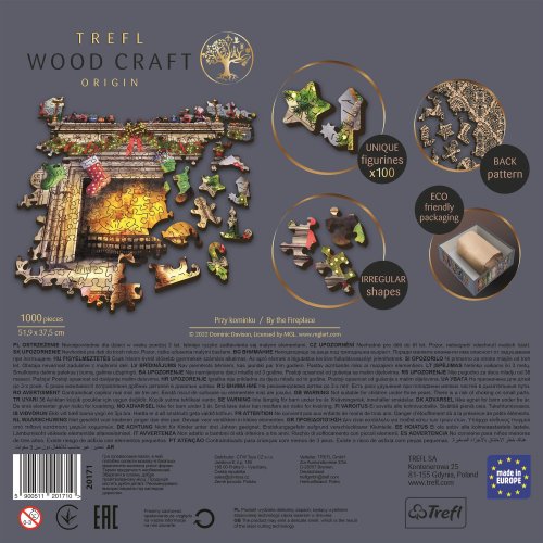 Dřevěné oboustranné puzzle TREFL z prémiové řady Wood Craft Origin se speciálně tvarovanými dílky, které jsou inspirované Vánocemi. Puzzle je vyrobeno ze silné dřevovláknité desky a vyřezáno laserem, díky čemuž jsou okraje hladké a dílky do sebe lehce zapadají.