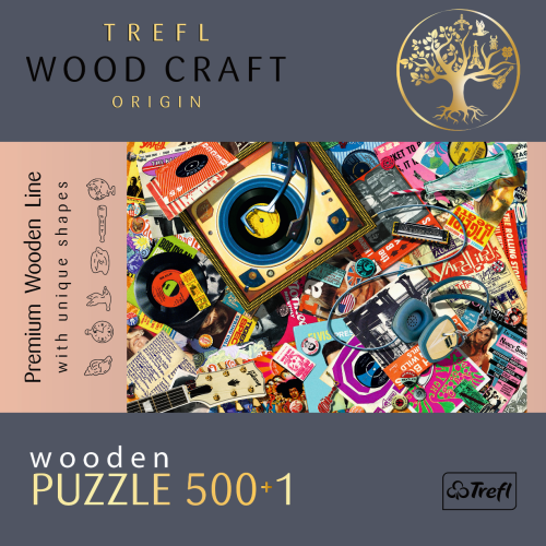 Dřevěné oboustranné puzzle TREFL z prémiové řady Wood Craft Origin se speciálně tvarovanými dílky.