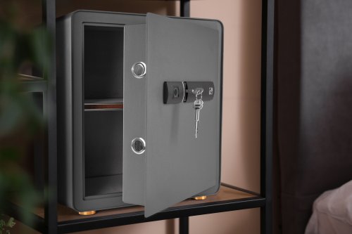 Když jde o bezpečnost, záleží na detailech. Ke svým cennostem se dostanete rychle, pohodlně, bezpečně a bez zbytečných hesel. Dvířka jsme osadili biometrickým zámkem pro až 29 uložených otisků prstů, který po přiložení prstu trezor během vteřiny otevře. A pokud se vybije baterie? Pak jednoduše použijete záložní bezpečnostní klíč, který jsme přidali do balení.