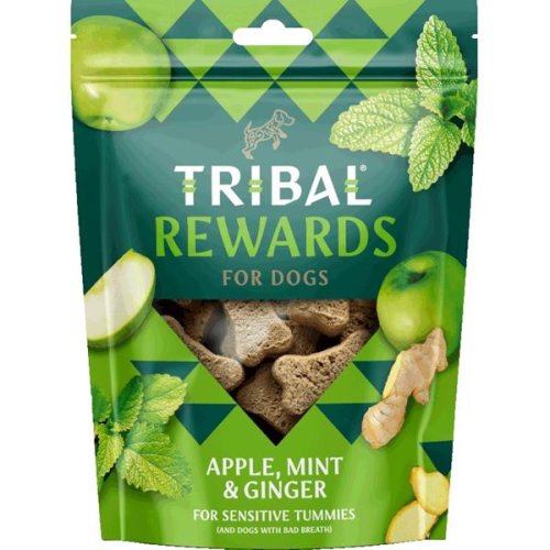 Zdravé pečené pamlsky s jablky, mátou a zázvorem jsou skvělé pro citlivá bříška a pro péči o dutinu ústní. Pamlsky jsou plné superpotravin, které mají příznivé zdravotní účinky. Od kokosového oleje, který má všestranné zdraví posilující účinky, přes květy levandule, které mají uklidňující účinky, až po mátu a zázvor, které zlepšují trávení. Pamlsky jsou šetrně ručně pečené v uhlíkově neutrálních pecích na dřevo. Pochoutky jsou vegetariánské, pokud mají psi v jídelníčku dostatek masa, nepotřebují vždy maso v pamlscích. Receptura s dvojím účinkem máty a zázvoru uklidňuje citlivá bříška a osvěžuje dech (který může být důsledkem špatného trávení). Tyto bezmasé odměny jsou pečené v troubě, hypoalergenní a neobsahují škodliviny. Složení: bezlepková mouka (ovesná, rýžová), na vzduchu sušená jablka (10 %), olivový olej, med, zázvor (1 %), mátový olej (0,2 %). Analytické složky: hrubý protein 7,2 %, hrubý tuk 12,8 %, hrubá vláknina 2,7 %, hrubý popel 1,6 %.