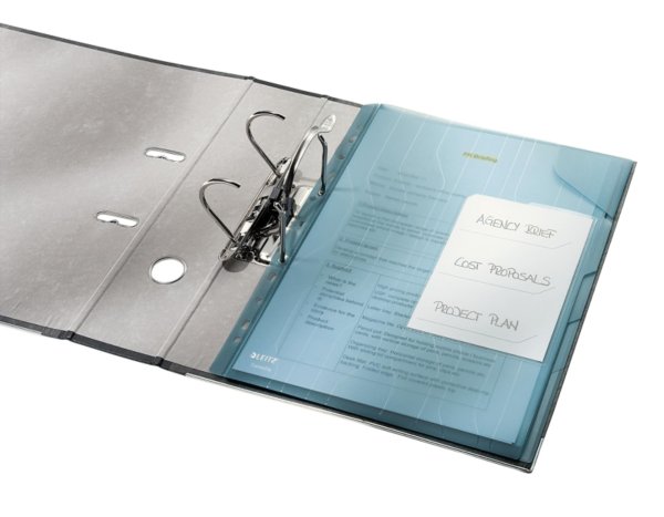 Kombinace desek a závěsné kapsy, což umožňuje flexibilní použití; unikátní skrývatelná závěsná europerforace Kapsa v rohu desek chránící vložené dokumenty; snadný přístup k dokumentům; vhodné na cesty …