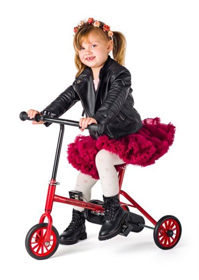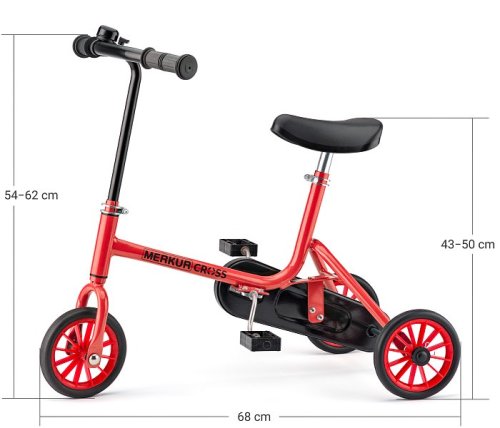 Klasická velice oblíbená tříkolka s řetězovým pohonem zadních kol. Tříkolka je vybavena výškově nastavitelným sedátkem a přední vidlicí. Rozměr: 62cm výška x 40cm šířka x 70cm délka. Hmotnost: 3,6 kg. Tříkolka je sestavena a balena v igelitovém pytli. Barva červená. Tříkolka nemá klasickou brzdu, ale brzdí se šlápnutím dozadu. Věk: 3+ Nosnost: 20kg. -Řidítka: Od země k ručkám – min. 55cm, Rozpětí ruček - 20cm od sebe. -Od země k horní ploše sedátka – min. 43cm, max. 49,5cm, Špička sedátka k řídítkům – 30cm Šlapky: - Vršek šlapičky (spodní) od země 10cm, Vršek šlapičky (horní) od země 24,5cm.