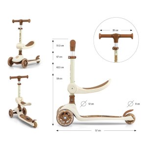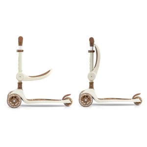 Koloběžka FUZZY roste spolu s dítětem a přizpůsobí se jeho potřebám. Nejprve slouží jako odrážedlo se sedátkem, později jako klasická balanční koloběžka.