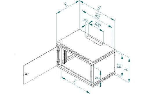 POPIS, ÚČEL POUŽITÍ: 19“ jednodílný nástěnný rozvaděč s krytím IP30. Rozvaděč se věší přímo na zeď. Součástí rozvaděče jsou dvě posuvné vertikální lišty. Konstrukce rozvaděče: – kompaktní svařovaný rozvaděč – celoskleněné dveře: bezpečnostní tvrzené sklo, tloušťka 5 mm Rozvaděče jsou určeny k instalaci datových a telekomunikačních zařízení a jejích distribučních systémů. Rám rozvaděče a všechny oddělitelné části jsou propojeny pomocí zemnících kabelů, které musejí být řádně připevněny a zasunuty do konektorů po celou dobu užívání rozvaděče. Na spodní části rozvaděče je umístěn šroub M8 jako hlavní zemnící bod pro uzemnění. Kabelové vstupy kryté vylamovacími záslepkami jsou umístěny v horní a ve spodní části.