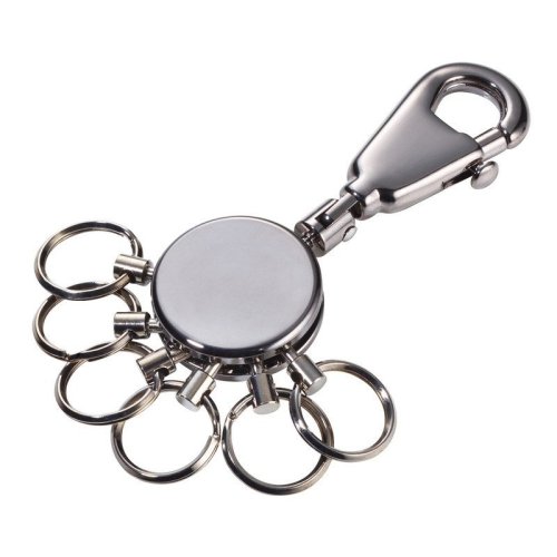 Kulatá klíčenka ve tvaru karabinky a s 6 kusy odnímatelných kroužků, díky kterým máte organizaci klíčů stále pod kontrolou. Stříbrné provedení.<br> <br> • rozměry: 90 x 25 x 9 mm<br> • hmotnost: 48 g<br> • karabinka s 6 ks odnímatelných kroužků<br> • vhodná i jako dárek<br> • snadná organizace klíčů tzv. Key Organiser