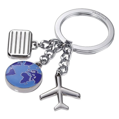 Klíčenka se 3 cestovními přívěsky - letadlo, kufr, glóbus. Kombinace modré a stříbrné barvy.<br> <br> • rozměry: 85 x 35 x 5 mm<br> • hmotnost: 27 g<br> • motiv cestování - letadlo, kufr, glóbus<br> • vhodná i jako dárek