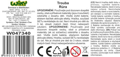 Trouba s efekty. Velikost 15 cm. Přesné rozměry 11x7x15 cm. Vydává světelné a zvukové efekty. Baterie 2xAA nejsou součástí balení.
