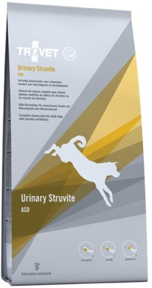 Může se používat jak léčebně, tak preventivně. Snižuje pH moči na hodnoty 6 – 6,4. Minimalizuje objem a tvorbu struvitů. Nízký obsah draslíku napomáhá k udržení pH moči na nízké hladině. Množství hořčíku zabezpečuje i při dlouhodobém preventivním podávání ochranu proti vzniku hypomagnesie. Indikace: Urolitiáza způsobená struvity. Při opakujících se nálezech struvitů. Krmivo napomáhá rozpouštění struvitů a eliminuje recidivy. Složení: pšenice, sádlo, kukuřičný lepek, drůbeží maso, rýže, hydrolyzovaná drůbeží játra, chlorid vápenatý, pivovarské kvasnice, chlorid sodný, inulin. odouranty. Neobsahuje žádné umělé příchutě, barviva ani aromata. Analytické složky: hrubý protein 23,5 %, hrubé oleje a tuky 18,5 %, hrubý popel 6,5 %, hrubá vláknina 1,7 %, vlhkost 8,0 %, uhlohydráty 41,8 %, chlór (Cl) 2,1 %, vápník (Ca) 0,9 %, fosfor (P) 0,5 %, draslík (K) 0,3 %, sodík (Na) 0,3 %, síra (S) 0,2 %, hořčík (Mg) 0,07 %. Nutriční doplňkové látky: Vitamíny: Vitamin A 25000 MJ/kg, Vitamin D3 2000 MJ/kg, Vitamin C 200 mg/kg, Vitamin E 150 mg/kg. Stopové prvky: síran železnatý monohydrát (Fe) 45 mg/kg, síran zinečnatý monohydrát (42) mg/kg, oxid manganatý (Mn) 10 mg/kg, pentahydrát síranu měďnatého 5 mg/kg, jodičnan vápenatý bezvodý (I) 0,4 mg/mg, seleničitan sodný (Se) 0,1 mg/kg. Látky okyselující moč: Chlorid amonný 1,5 %. Obsahuje antioxidanty. Dávkování: Doporučujeme Trovet Urinary Struvite krmit po dobu 5-12 týdnů pro rozpuštění struvitových urolitů. Pro prevenci recidiv je vhodná doba krmení 6 měsíců. Zvířata mohou tuto dietu konzumovat celý život. Zvířata musí být pod stálou kontrolou veterinárního lékaře.