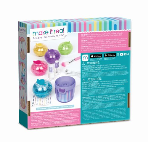 Máte doma malou parádnici, která se ráda zkrášluje? Pak ji jistě nadchnete touto třpytivou party sadou. Sada obsahuje spinner, 5 druhů barevných třpytek, 1 jiskřivý základní lak, čirý lak, štětec a samolepky na nehty. Vhodné pro dívky od 8 let. Laky na nehty jsou na vodní bázi a lze je odstranit jemným třením teplou vodou a mýdlem.