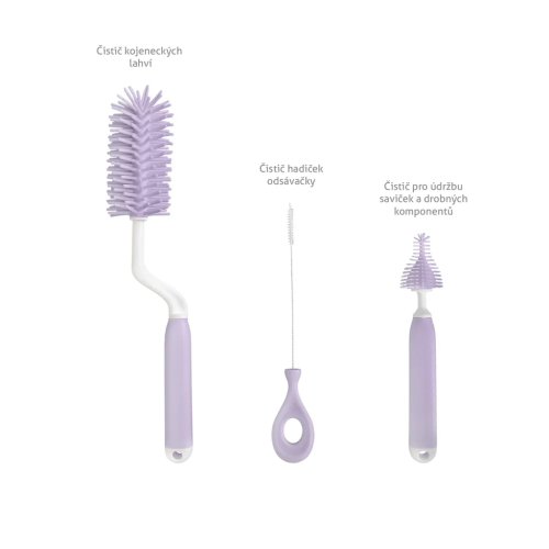 TrueLife Nutrio Cleaning Set – Hygienická čistota kojeneckých lahví a příslušenství Každý rodič chce ochránit své miminko před různými nástrahami a o jeho zdraví se postaráte také důkladnou hygienou. V čistotě je třeba udržovat nejen okolní prostředí, ale také nejrůznější lahvičky, savičky a další příslušenství. Právě pro tyto účely slouží sada TrueLife Nutrio Cleaning Set. Navržena byla s ohledem na maximální pohodlí a bezpečnost, proto je vyrobena pouze z nejkvalitnějších materiálů bez obsahu BPA, ftalátů či jiných škodlivin. 3 typy kartáčů dokonale vyčistí různé typy příslušenství a lahviček z jakéhokoliv materiálu. Protiskluzová úprava otočné rukojeti zajišťuje pevné a bezpečné uchopení i mokrou rukou a minimální námahu. Tato sada v krásném fialovém provedení obsahuje vše, co potřebujete k údržbě veškerého příslušenství, lahviček a saviček pro vaše děťátko.
