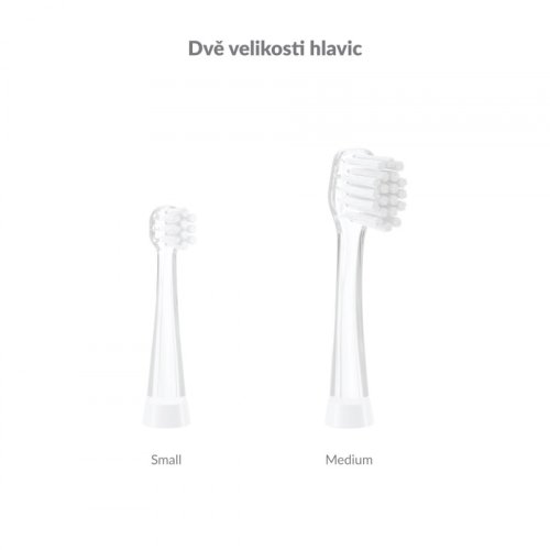 3 hlavice v balení Součástí balení jsou 2 hlavice Small a 1 hlavice Medium, kartáček tak může používat více dětí. Jiné typy hlavic lze dokoupit.