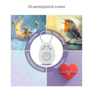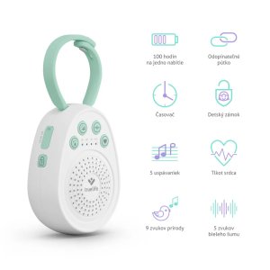 Široký repertoár pro klidné uspávání Miminka snáze usnou, když uslyší příjemný zvuk a TrueLife BabyTone S3 jich nabízí hned 20. Na výběr máte 5 melodií, 9 zvuků přírody, 5 zvuků bílého šumu či tlukot srdce. Srdeční tep miminko zklidňuje už v prenatálním období a po narození mu připomíná bezpečí. Zvuk, který si miminko oblíbí, zní z kvalitního reproduktoru ve smyčce, dokud zařízení manuálně nebo za pomoci časovače nevypnete. Časovač lze nastavit na 30, 60 nebo 90 minut. Oblíbený zvuk není třeba vždy hledat, poslední použitý zůstane v paměti a po zapnutí se hned přehraje, takže si jen nastavíte potřebnou hlasitost.