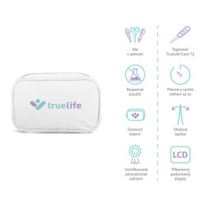 Přesný a rychlý teploměr Zdraví dítěte ohlídá digitální teploměr TrueLife Care T3, který změří teplotu naprosto přesně již za 5 vteřin na některém z těchto tří míst: podpaží, ústa či konečník. Měřit jím lze i teplotu vodní lázně, stačí zvolit příslušný mód. Naměřené hodnoty ihned vidíte na podsvíceném displeji, který mění barvu v závislosti na naměřené teplotě. Zelená znamená normální teplotu, oranžová zvýšenou a červená signalizuje horečku. Teploměr neobsahuje rtuť ani žádné škodlivé látky a jeho ohebná špička je šetrná k pokožce miminek.