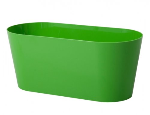Plastový designový oválný zelený lesklý hladký truhlík vhodný do každého interiéru. Vyroben z kvalitního silnějšího polypropylenu. Dlouhý 29cm.