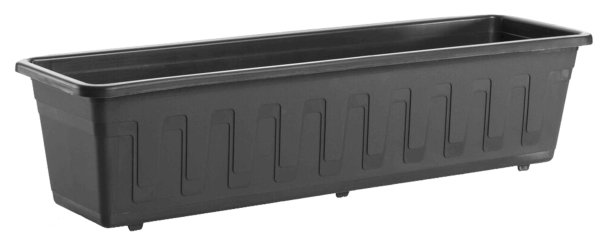 Plastový truhlík s výrazným okrajovým lemem. Barva: antracitová. Šířka: 98 cm, výška: 15 cm, hloubka: 17 cm.