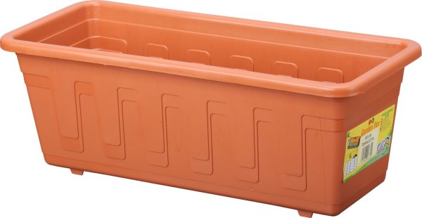 Plastový truhlík se samozavlažovacím systémem, který rostlinám zaručuje postupné doplnění zálivky. Má pevný okraj a je odolný vůči vlivům počasí. Šířka: 40 cm, výška: 14,5 cm, hloubka: 17 cm.