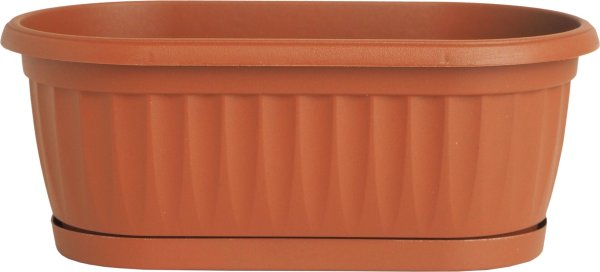 Samozavlažovací plastový truhlík s dezénem. Součástí je podmiska, kterou lze snadno sundat. Truhlík je úzký, je tedy vhodný i pro umístění na úzké parapety. Barva: terakota. Šířka: 22 cm; výška: 9 cm, hloubka: 12 cm.