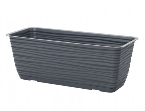 Plastový truhlík s jemnými vlnkami po celém obvodu. Součástí je podmiska. Barva: antracitová. Šířka: 50 cm, výška: 15 cm.