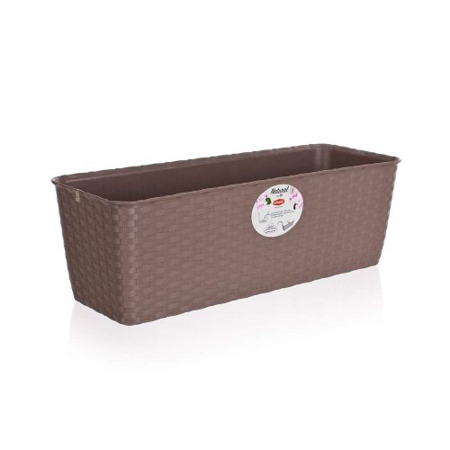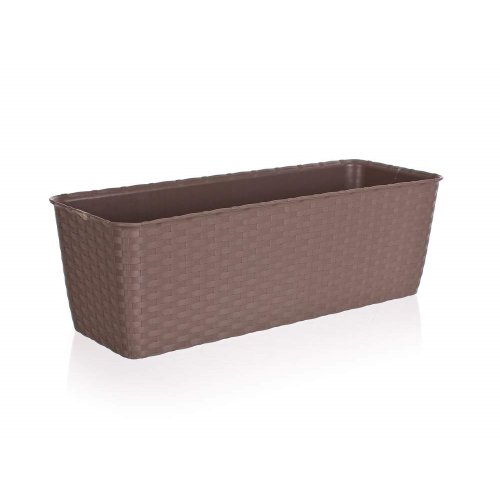 Plastový samozavlažovací truhlík věrně imituje rattanový výplet. Barva: béžová. Šířka: 50 cm, výška: 16 cm, hloubka: 18 cm.