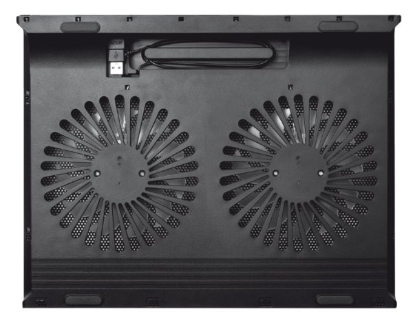 Typ podložky kancelářská Podsvícení modré Připojení USB-A Napájení přes USB Bez vypínače Vhodné pro notebooky do velikosti 17" Počet ventilátorů 2 Materiál plast