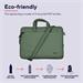 Klíčové vlastnosti *Praktická přenosná taška s velkou přihrádkou pro notebooky až 16 palců (26 x 37 cm) *Udržitelná tkanina vyrobená z 11 recyklovaných PET lahví *Polstrovaná hlavní přihrádka s podšívkou z jemného mikrovlákna bezpečně udrží váš notebook *Top-loader design se snadným přístupem k vašemu notebooku a dokumentům *Přední kapsa na zip pro drobné příslušenství, jako je telefon, nabíječka a tablet *Lze nosit za rukojeť nebo odnímatelný, nastavitelný ramenní popruh
