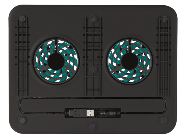 Typ podložky kancelářská Bez USB HUBu Připojení přes USB-A Napájení přes USB Bez vypínače Vhodné pro notebooky do velikosti 16" Počet ventilátorů 2 Materiál plast