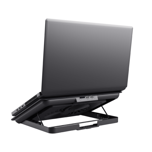 Typ podložky kancelářská Funkce USB HUB Připojení přes USB-A Bez vypínače Vhodné pro notebooky do velikosti 16" Počet ventilátorů 1 Délka kabelu 1 m Materiál kov
