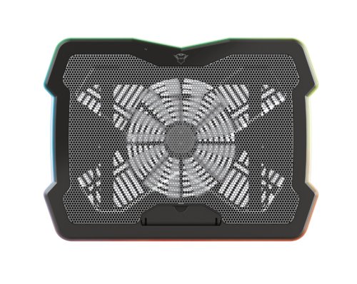 TRUST GXT 1126 Aura Multicolour-illuminated Laptop Cooling Stand. Vícebarevně osvětlený chladicí stojan, který udrží váš notebook v chladu i během těch nejnáročnějších her. Udržujte svůj notebook v chladu během horkých herních relací, zůstaňte v ergonomické poloze, abyste snížili zátěž na krk a záda. Doplňte svůj herní setup a zůstaňte v pohodě.