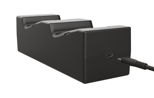 Možnost současného nabíjení 2 ovladačů Dvě dobíjecí baterie o kapacitě 1200 mAh součástí LED indikátory stavu nabití Napájení přes USB port konzole