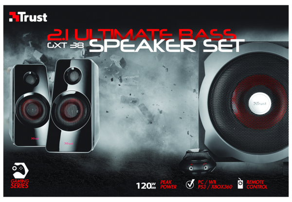 Sestava 2.1 reproduktorů s dřevěným subwooferem a úhrnným výkonem 60 W RMS (maximální výkon 120 wattů)