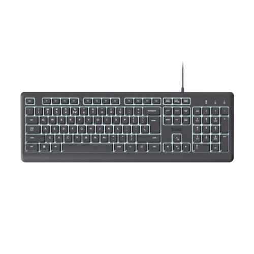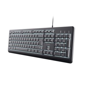 Pracujte nepřetržitě s klávesnicí Trust Primo Illuminated. Tato tichá klávesnice je vybavena podsvícenými klávesami LED pro snadné čtení bez ohledu na denní dobu. Umožňuje úpravu jasu pomocí kláves Fn podle svého prostředí. Klávesnice je vyrobena ze 70 % recyklovaných plastů pro vyšší produktivitu. Konstrukce Primo Illuminated je odolná proti polití, chrání před nehodami způsobenými rozlitím tekutin. Má nastavitelné nožičky pro nastavené ideálního úhlu pro psaní. Žádné starosti, maximální produktivita. Jednoduše připojte klávesnici Trust pomocí 180cm kabelu USB-C nebo dodaného převodníku USB-C-A a jste připraveni. Žádné ovladače, žádná zpoždění, žádné bolesti hlavy. Pouze okamžitá kompatibilita s vaším oblíbeným zařízením.