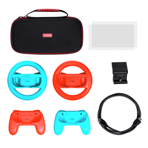 Kompletní balíček 7 v 1 pro Nintendo Switch a Switch OLED Zahrnuje pevné pouzdro pro bezpečné přenášení konzole Dvě Joy-Con rukojeti pro pohodlnější držení při hraní Dva volanty pro realistický závodní zážitek Ochranná tvrzená skla pro displej Switch i Switch OLED Nabíjecí stojánek a kabel USB-C–A pro snadné dobíjení Ideální řešení pro hráče, kteří chtějí mít vše potřebné v jednom balení Lehké a přenosné provedení, vhodné pro domácí použití i cestování