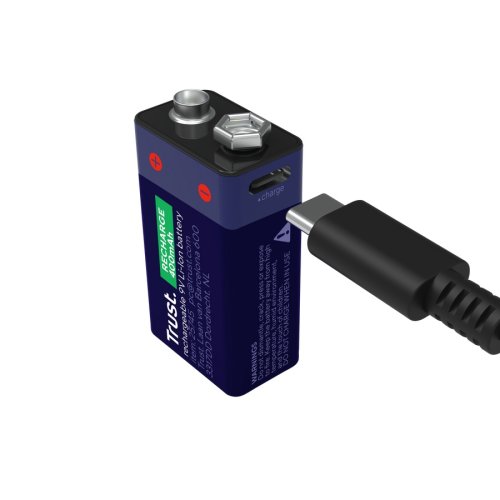 Trust USB-C dobíjecí 9V baterie dobíjecí 9V baterie USB-C pro udržitelné napájení Rozlučte se s jednorázovými bateriemi a přejděte na čistší napájení s touto dobíjecí 9V lithium-iontovou baterií USB-C. Ideální pro detektory kouře, RC hračky, přenosná rádia a další zařízení. Jedná se o udržitelnější způsob napájení vašich zařízení – není potřeba žádná objemná nabíječka! Neztrácejte čas - díky schopnosti baterie se plně nabít během 4 hodin - kapacita 4,44 Wh - udržuje vaše zařízení v provozu tak dlouho, jak je to možné. Zelený LED indikátor stavu baterie ukazuje, kdy se baterie nabíjí a kdy je plně nabitá. Snadné nabíjení pomocí kabelu a nabíječky telefonu nebo USB portu PC/notebooku.