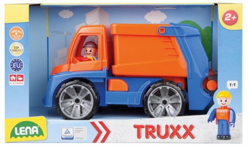 Truxx auto popelář z kvalitního plastu a velmi pevnou stavbou. Plně mechanicky funkční. Obsahuje pojistku proti nežádoucímu vyklopení, odklopitelnou kabinu s aktivním panáčkem. Baleno v okrasném kartónu. Vhodné pro kluky od 2 let.