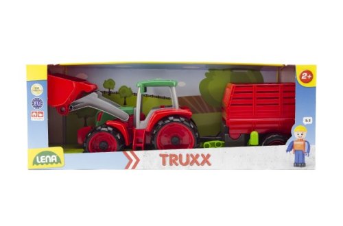 Truxx traktor se lžící a vozíkem z kvalitního plastu a velmi pevnou stavbou. Plně mechanicky funkční. Obsahuje odklopitelnou kabinu s aktivním panáčkem. Vyrobeno v ČR