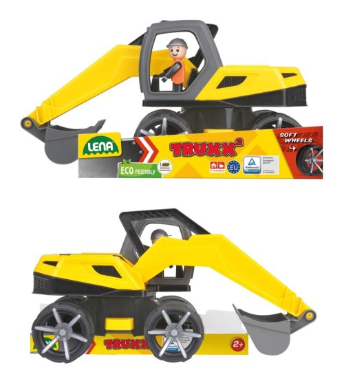 Truxx 2 bagr z kvalitního plastu a velmi pevnou stavbou. Plně mechanicky funkční. Obsahuje pojistku proti nežádoucímu otáčení spodní části, odklopitelnou kabinu s aktivním panáčkem. Pogumovaná kola s tichým chodem.
