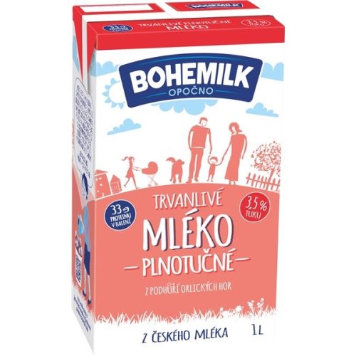 Trvanlivé plnotučné mléko z podhůří Orlických hor, vynikající kvalita a chuť Stabilní vlastnosti i při vyššich teplotách - možnost použití do strojů na přípravu cappuccina Obsah tuku: 3,5% Objem: 1 l