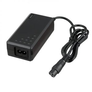 Napájecí adaptér o výkonu 60 W pro elektrokola a elektrokoloběžky s 24V bateriemi. Zařízení má na vstupu populární zásuvku IEC C8 a na výstupu Female zásuvku s ve standardu Mini XLR, často používanou v elektrických mobilních zařízeních. Přívodní síťový napájecí kabel není součástí balení.