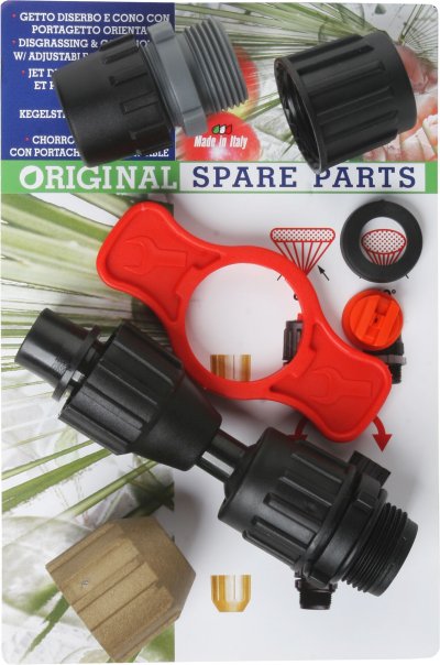 Sada obsahuje kruhovou trysku standard, trysku s přímou štěrbinou, ohebný kloub k vychýlení trysky až o 60° a klíč k výměně trysek.