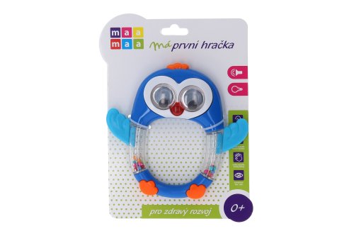 Tučňák chrastítko. Délka 15 cm. Vydává světelné a zvukové efekty. Napájeno bateriemi, které nelze vyjmout. 3xAG13 baterie součástí.