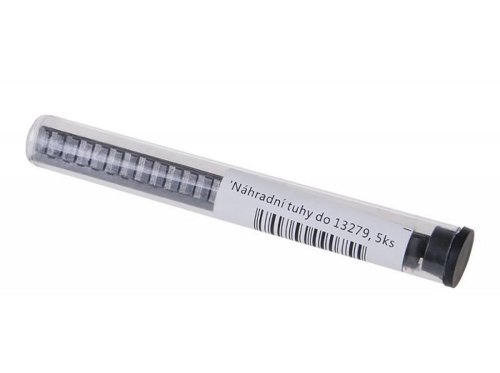 Tuha je dělena na segmenty o délce cca 5 mm, které se po otupení odlomí a je opět ostrý hrot. Klasická tvrdost tuhy - HB. Ochranný plastový tubus s 5 kusy náhradních tuh.