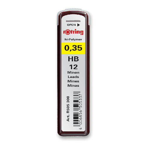 Tuhy Rotring s vysokým obsahem polymerů jsou díky speciálnímu složení extra pevné. Krabička obsahuje 12 ks tuh. Různá šířka a tvrdost tuhy.